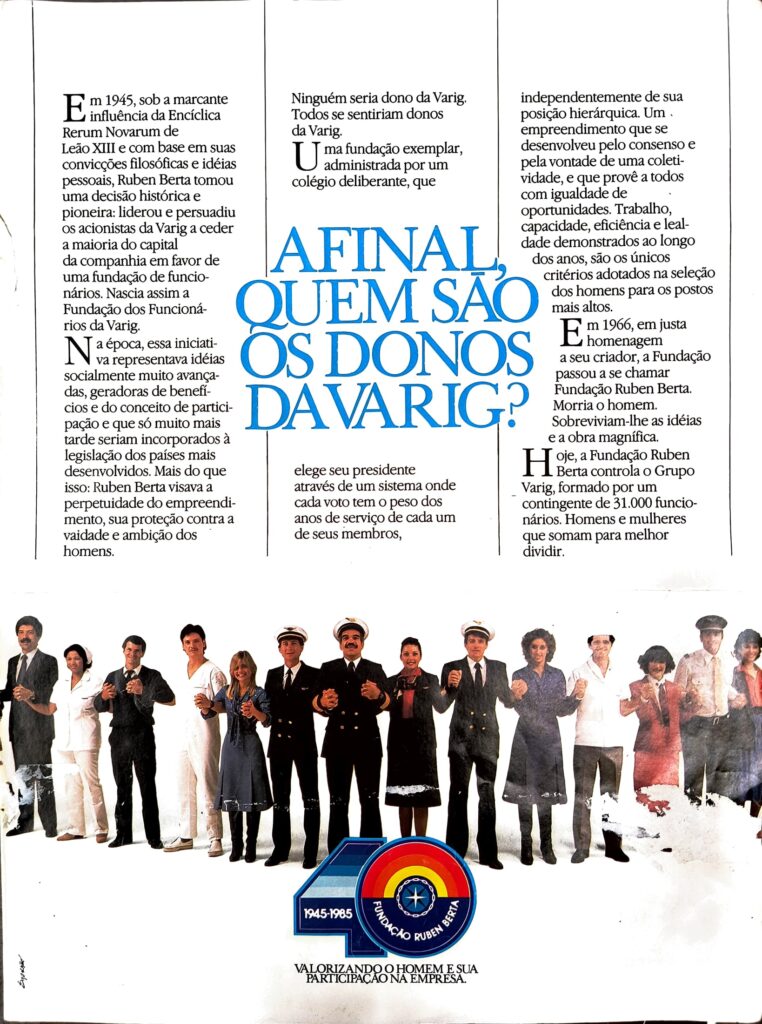Mais tarde, fiquei sabendo que o meu portfólio vinha sendo acompanhado pela diretoria, o que já me valera a escolha para membro do Colégio Deliberante da Fundação Ruben Berta, honraria reservada a 300 colegas, num universo de 22 mil. Além disso a criação do Museu Varig era uma obra admirada por todos, servindo para sedimentar o meu prestígio.
